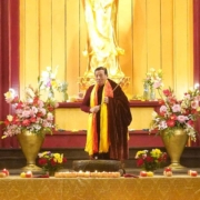 雄伟庄严的西渡观音寺内庆祝大典上,世尊慈悲地鼓励众追求成就的佛子们,依观音菩萨所行而行,依紫光上师所行而行。世尊开示:“佛教导所有众生行善,教导所有弟子慈悲。观音菩萨第一个响应,变成千手千眼观音。紫光上帅希望所有弟子们都成为菩萨,都成为千手千眼观音,都成为佛的化身,都成为观世音菩萨的一只手……你们已经具备了条件,只要依法修持……”